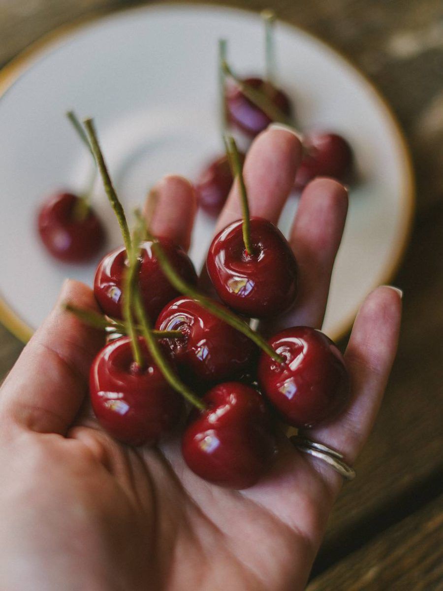 Сет складається з 5-ти глянцевих вишень бордового кольору.