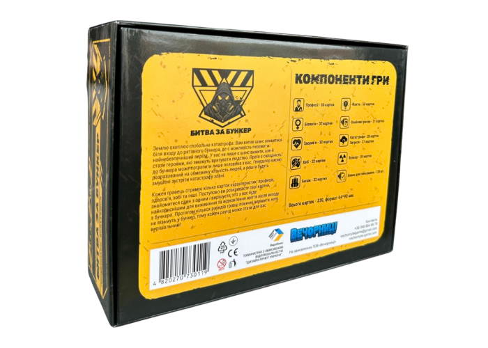 У настільній грі Битва за Бункер ви — не просто учасник, ви персонаж зі своєю історією, звичками, слабкостями та несподіваними талантами. Ваша мета — довести, що саме ви незамінні. Доведеться переконувати, плести інтриги, розкривати карти — і залишати найважливіше при собі до останнього моменту.