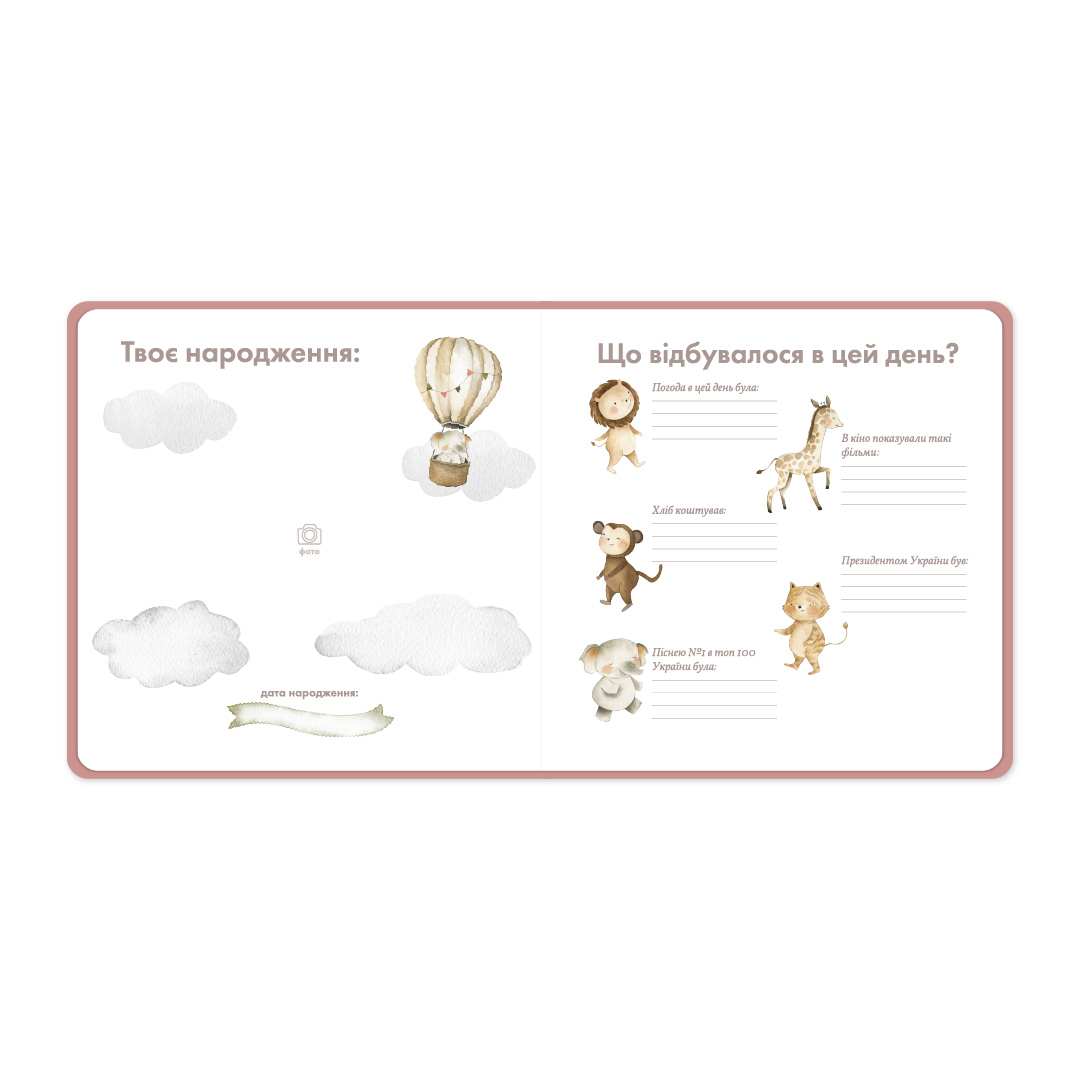 А також сторінку для запису інформації про те, що відбувалося в день народження дитинки (треба буде записати навіть ціну хліба та пісню, яка була ТОП 1 в українських пісенних чартах). Уявляєте, як потім те все переглядати? Цілковите задоволення.