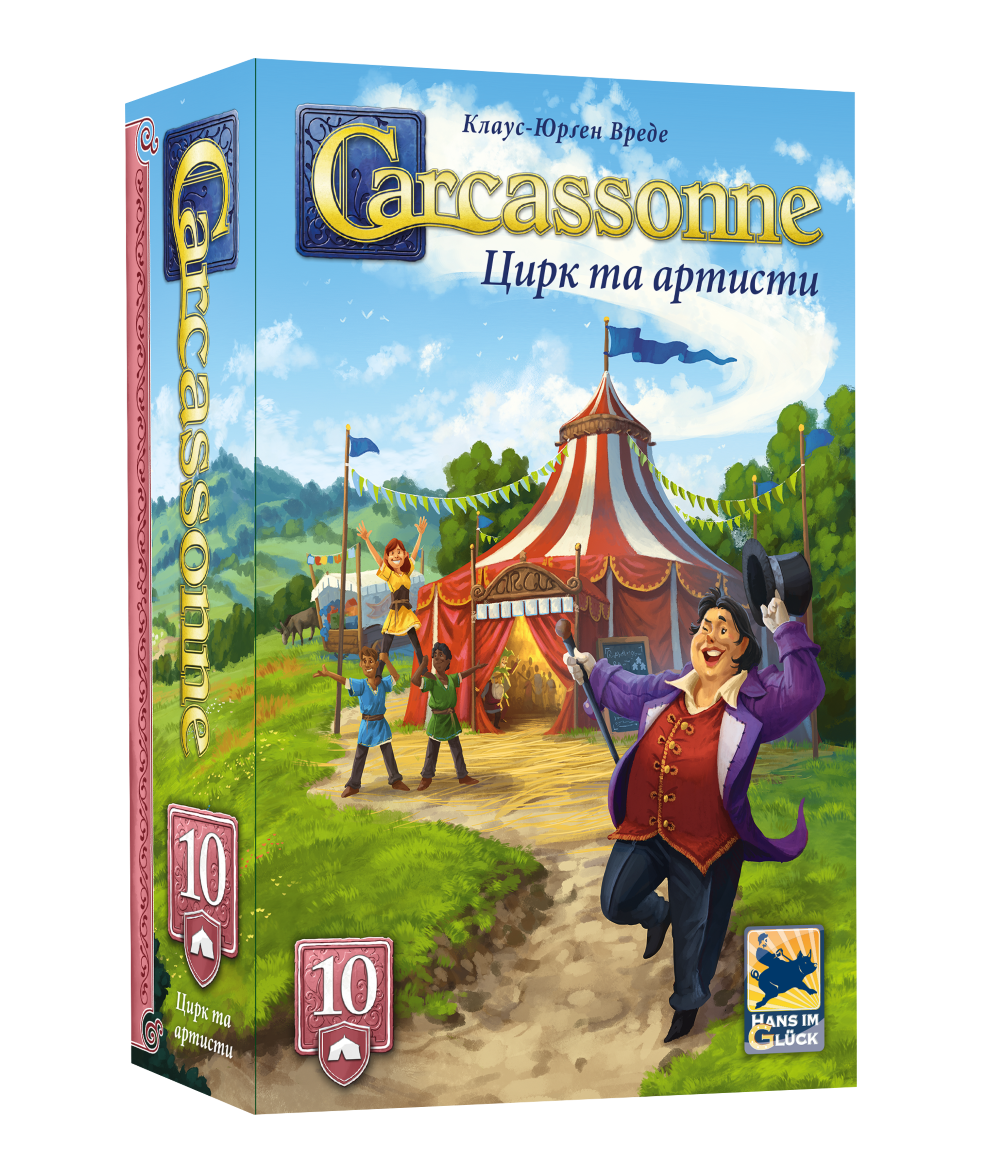 Цирк та артисти (Under The Big Top) — це десяте контентне доповнення до легендарної сімейної стратегії про будівництво середньовічних міст. Цього разу на спокійні луги Каркасону приходить свято, адже розширення пропонує аж 20 плиток циркових майданчиків, 16 жетонів виступів і нові фігурки, серед яких шатро та директорка цирку. Збирайте глядачів, влаштовуйте грандіозні виступи, створюйте піраміди з акробатів та дивуйте своїх підданців, заробляючи ціле море переможних балів!