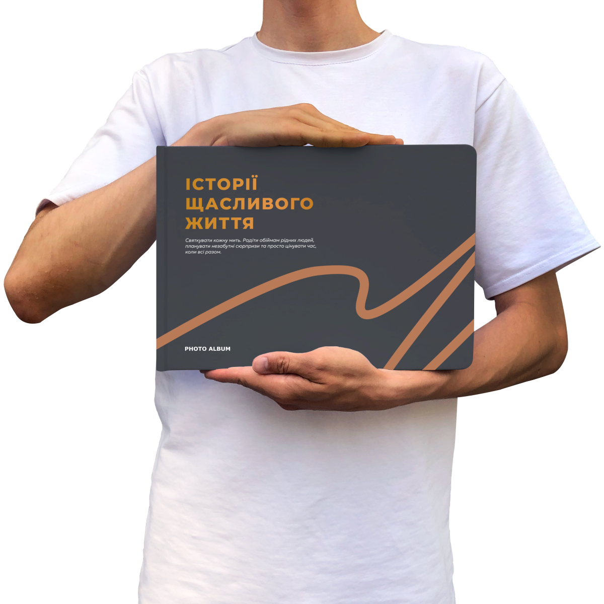 Фотоальбом «Історії щасливого життя» – це 30 пустих білих сторінок формату А4 в якісній твердій та приємній на дотик обкладинці. Все розроблено та створено в Україні! Розповідай свої смішні та сентиментальні історії у величезних фото або у дрібних полароїдах, супроводжуй їх написами від руки або стікерами та не забувай поповнювати колекцію фоток у пам’яті камери або телефону. А ще, даруй – постійно і від щирого серця!