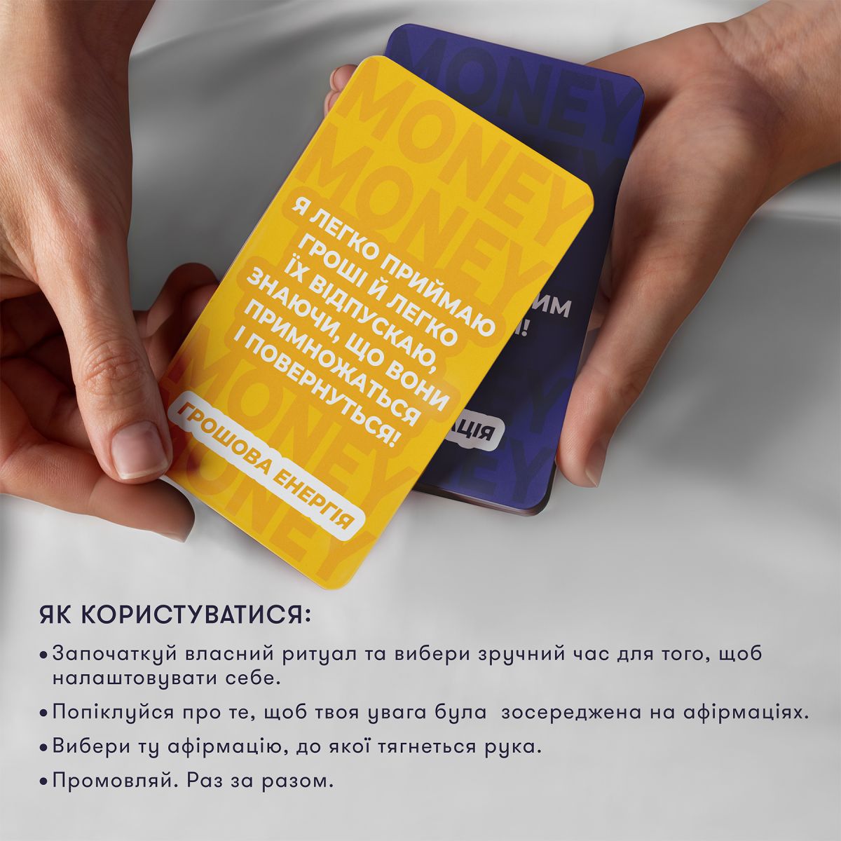 «Гроші люблять мене» — набір карток з афірмаціями, які налаштують на гарний робочий день і допоможуть покращити фінансову сторону вашого життя.