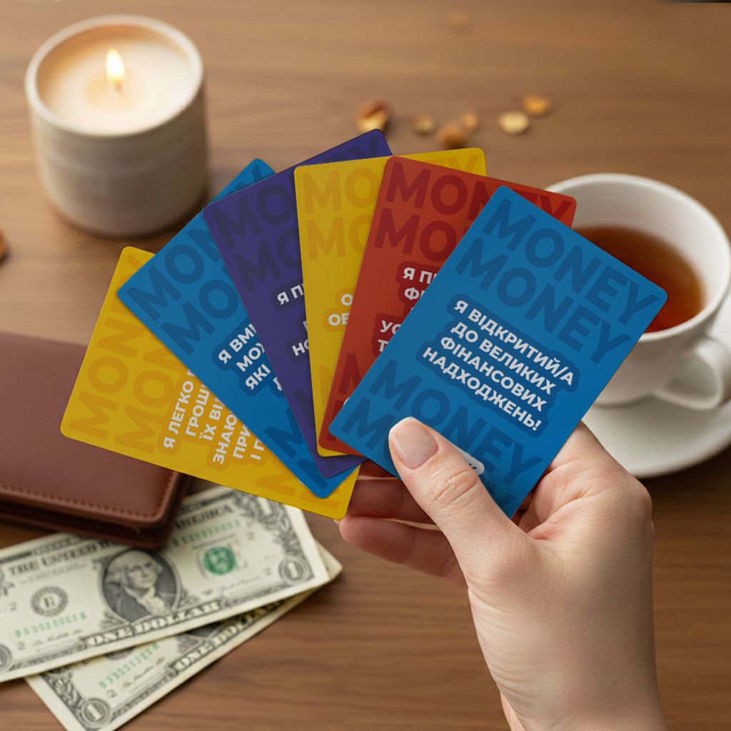 Картки з афірмаціями «Гроші люблять мене» — це класний щоденний інструмент для роботи з фінансовим мисленням і внутрішніми установками про гроші, достаток та фінансові звички.