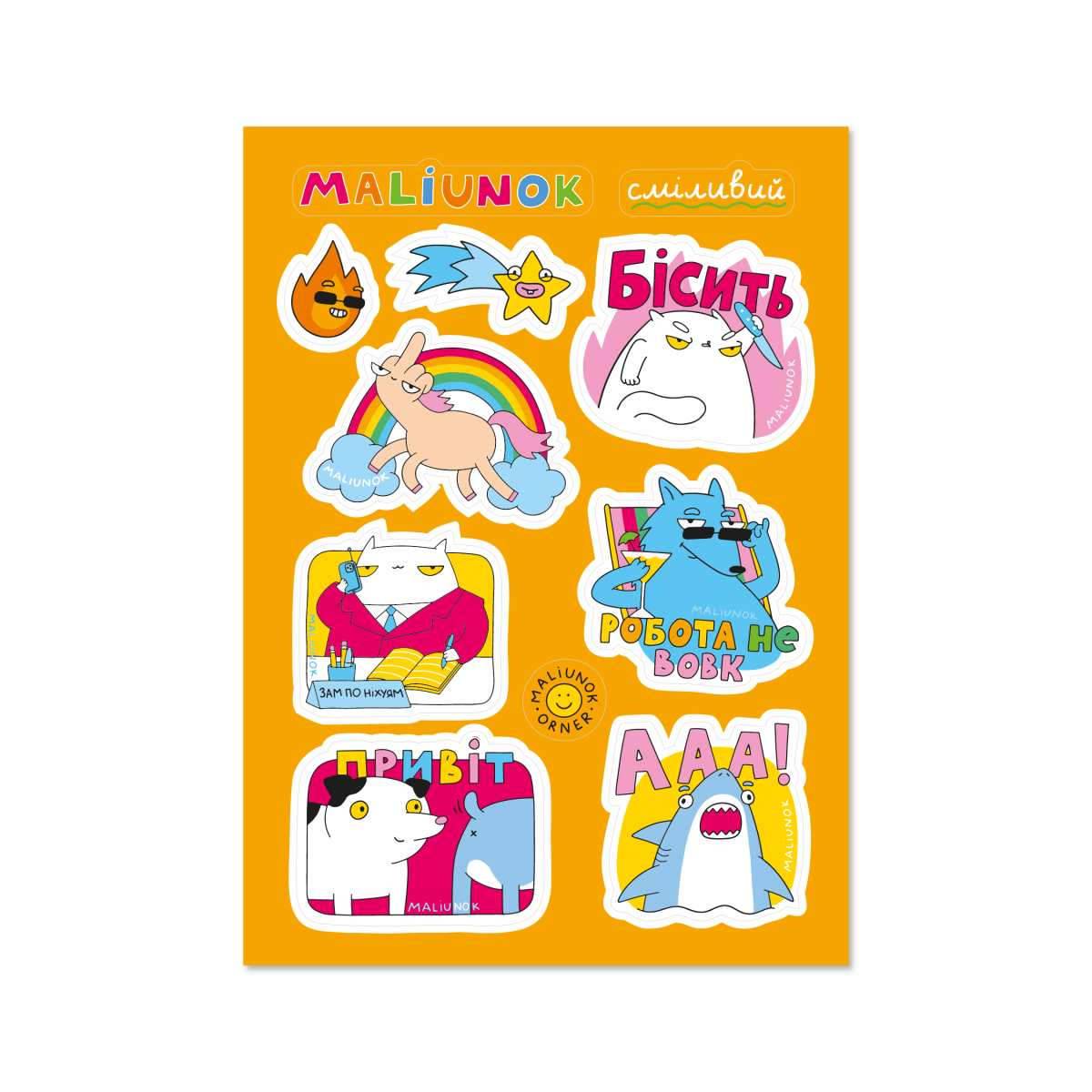 Набір стікерів ORNER x Maliunok «Сміливий + грайливий + зухвалий» створений, щоб показувати те, що крутиться в голові, і говорити за вас те, що інколи не хочеться або незручно вимовляти вголос.