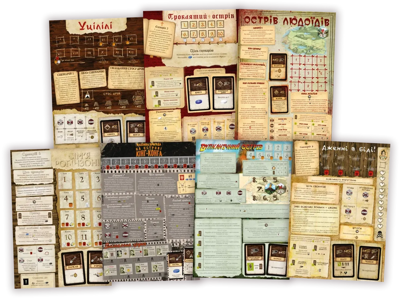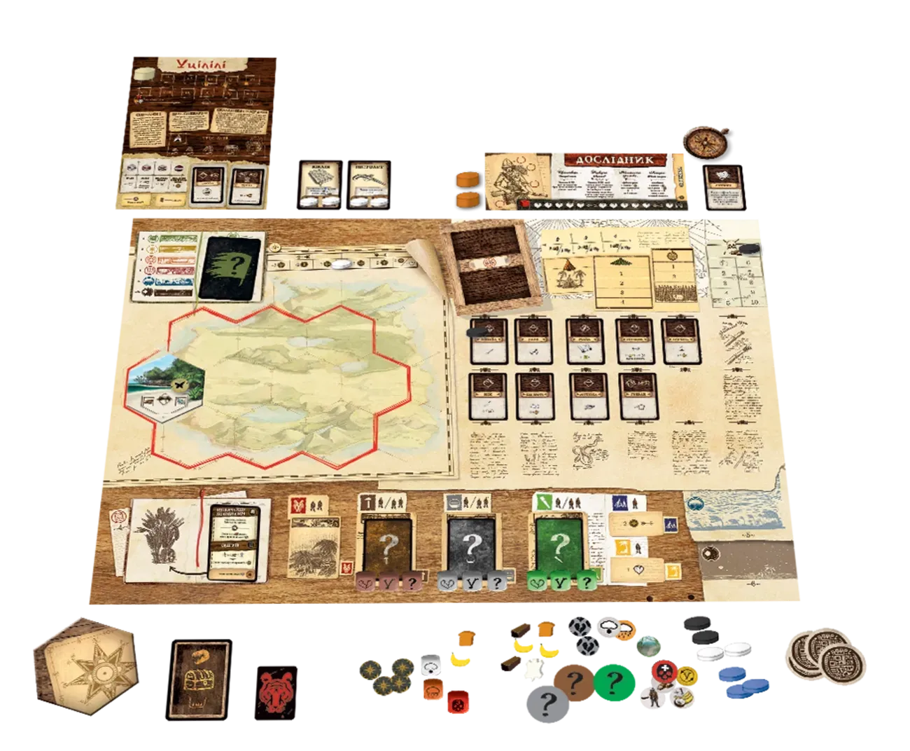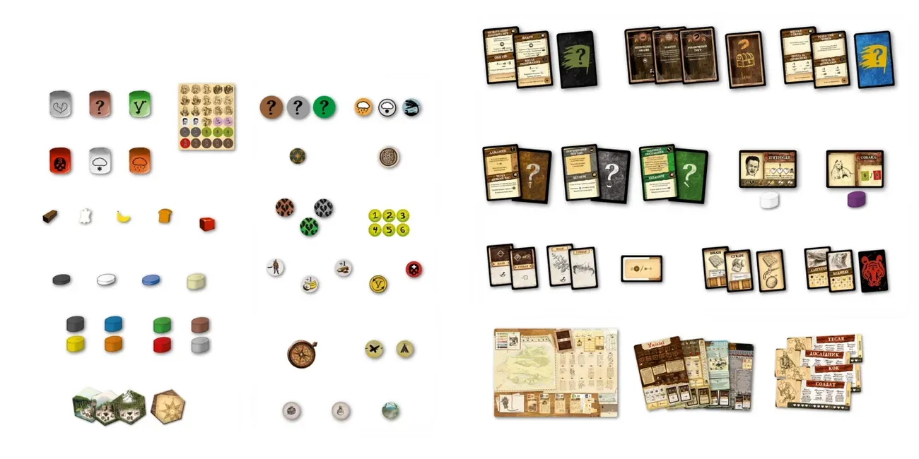 Комплектація настільної гри «Робінзон Крузо. Пригоди на проклятому острові (Robinson Crusoe: Adventures on the Cursed Island)»:
