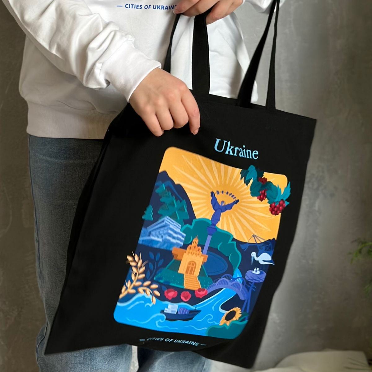Україна. На принті зображений збірний образ із символів кожного куточку нашої країни: