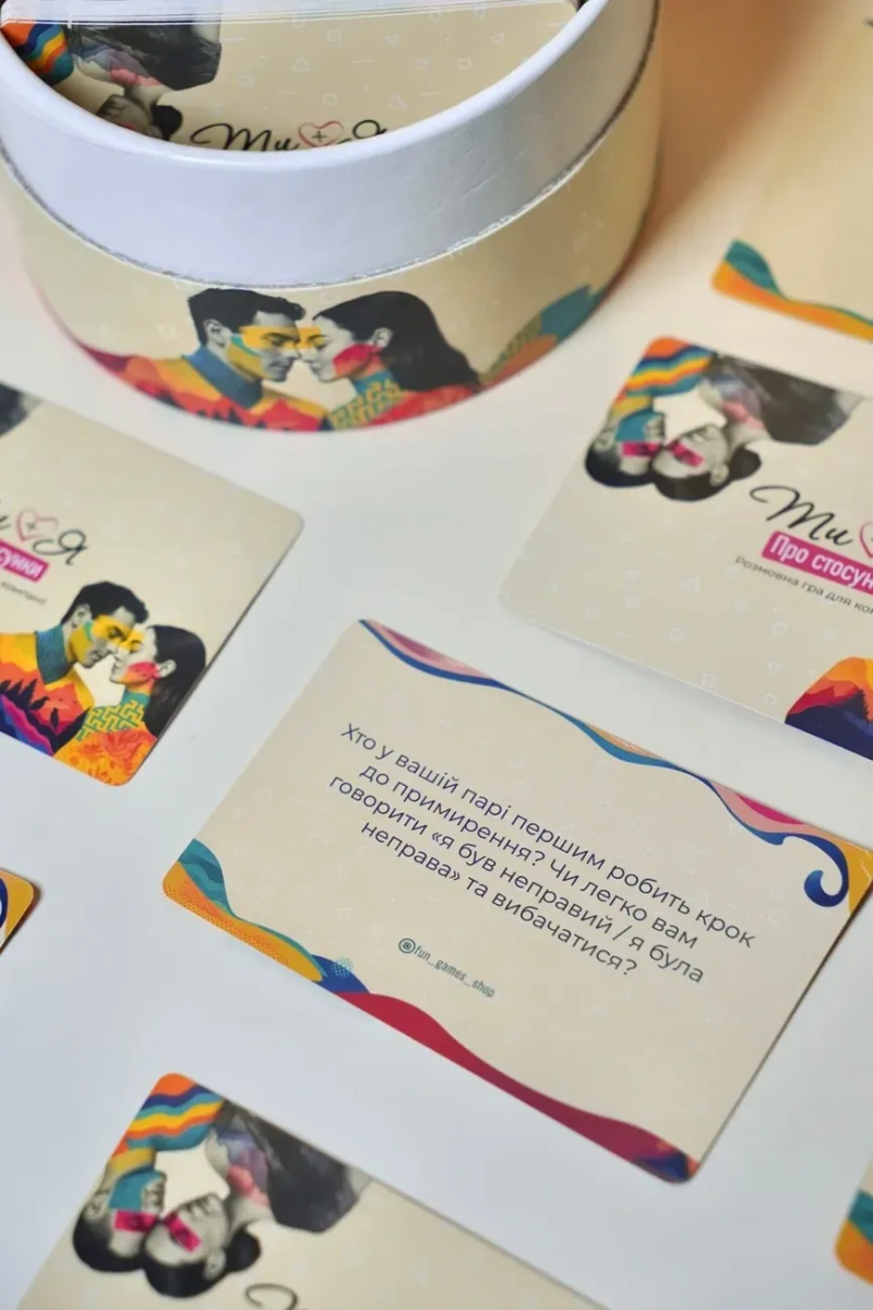 Тут немає правильних та неправильних відповідей — є живі люди, їхній досвід, сумніви, надії та почуття. Картка за карткою ви заглядаєте в чужі історії та несподівано глибше розумієте власні. Ревнощі, близькість, романтика, побут, плани, страхи та мрії — все це перестає бути абстрактним та стає напрочуд справжнім.