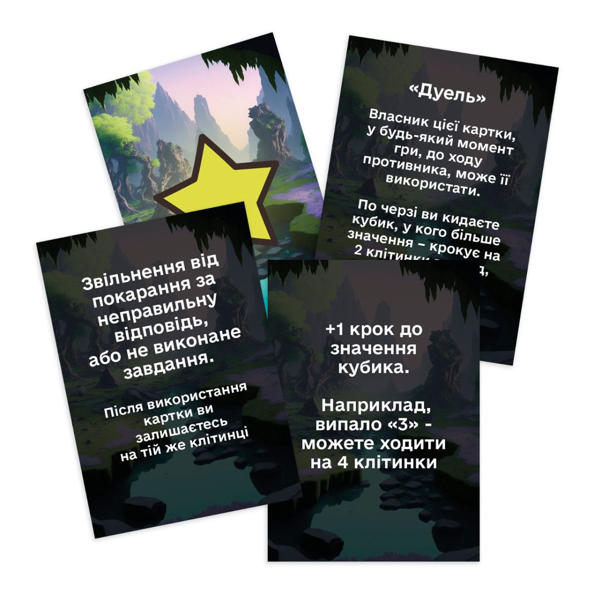 Цель игры – первым добраться до финиша. Бросок кубика определяет количество ячеек, которые игрок проходит в свой ход. В соответствии с ячейкой, на которой он остановился, игрок получает карточку задания, вопроса или бонуса. Ответив на вопрос или выполнив задание, игрок имеет возможность двигаться дальше, а бонусные карты помогают во время игры – освобождают от наказаний, дают дополнительный шаг, и тому подобное.